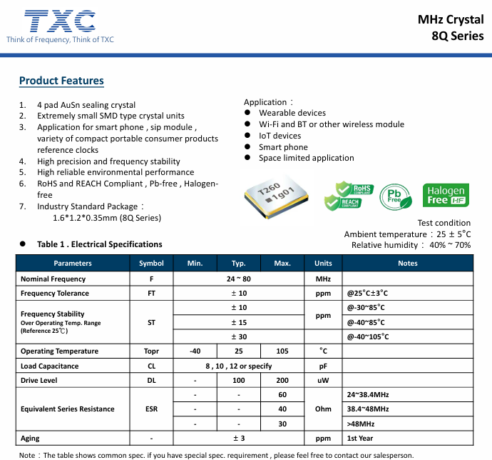 臺灣小尺寸晶振,可穿戴設(shè)備晶振,藍(lán)牙無線模塊晶振石英晶體振蕩器