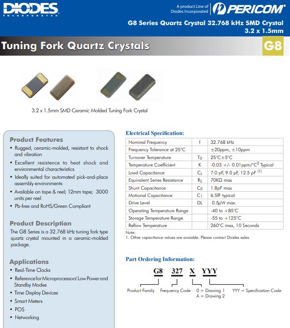 | G83270025 | Diodes晶振 | SaRonix-eCera™ G8 | 32.768kHz | - | 2-SMD, No Lead |