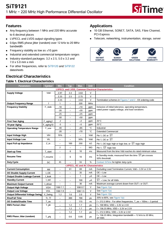 更多>>美國SiTime差分晶振SIT9121AI-2B2-33E125.000000 3225 125M LVDS